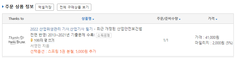 인강공학기사를 독학 및 합격하면서 성안당 교재가 괜찮다고 생각되어 이번 산업위생관리기사 독학 교재로 성안당 교재를 선택하게 되었다! 알라딘에서 36,000원이었는데, 5권으로 스프링 분철하면 5,000원이 추가되어 총 41,000원을 지출했다.